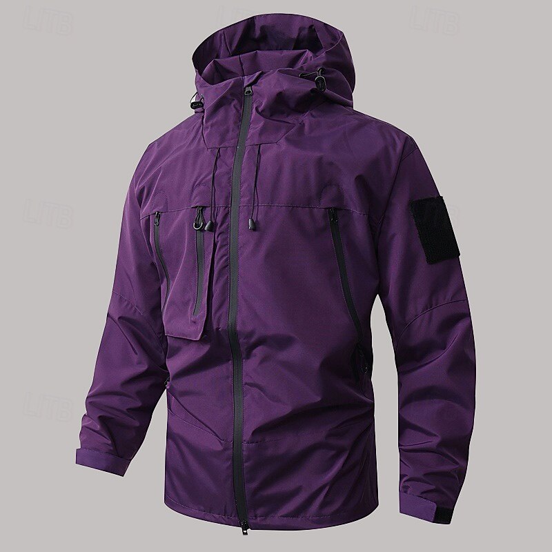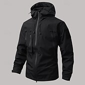 More information about Men's Softshell Jacket Transition Jacket Going out Waterproof Pocket All Seasons Plain Outdoor Hooded Regular Black White Purple Green Coffee Jacket