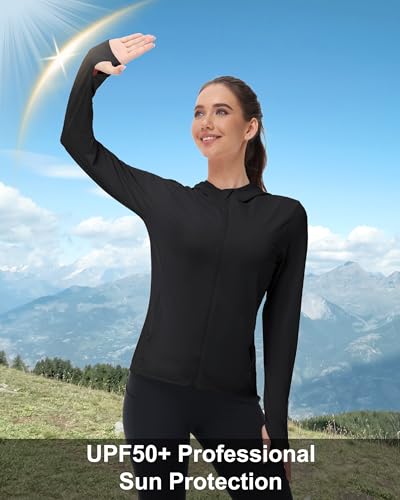 • Hoodie & Thumbholes: The Sun hoodie design provides enhanced coverage for your neck, and ears, reducing sun exposure; Thumbholes keep the sleeves securely in place, preventing them from riding up during movement