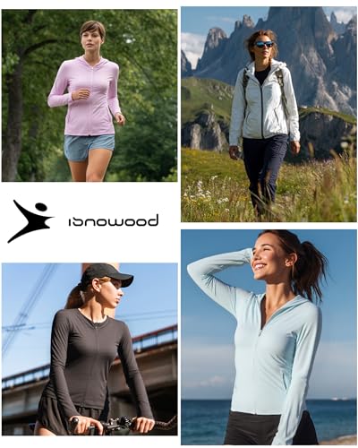 More information about isnowood Women's UPF 50+ Sun Protection Rash Guard, UV SPF Long Sleeve Zip Hoodie Jacket, Lightweight Hiking Outdoor Shirts