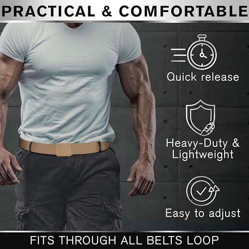 TECEUM Tactical Belt – Coyote B2 L – Heavy-Duty Military, Work, Hiking,Rigger, Utility, EDC Men’s Belts – Quick-Release – Nylon Web 1