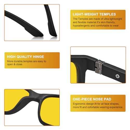 CARFIA Night Vision Glasses Driving for Men Women, Yellow Lenses Enhanced Vision in Low Light Conditions 7