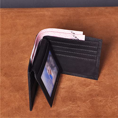 • [Passport-Size Leather Craft] Forged from premium genuine leather, this men’s ultra-thin bifold wallet matches passport dimensions, offering a compact yet durable design to complement travel or daily ID needs.