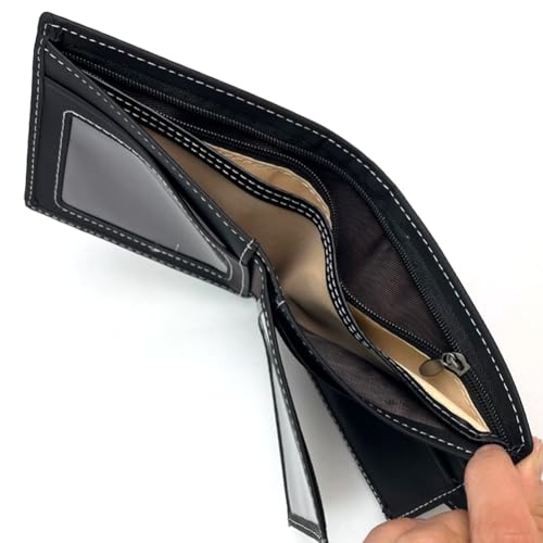 HOT ! Slim Wallet for Men With Metal Tag Minimalist Multiple Card Slots Inner Zipper Thin Stylish Mens Bifold Wallet with Id Window,Black