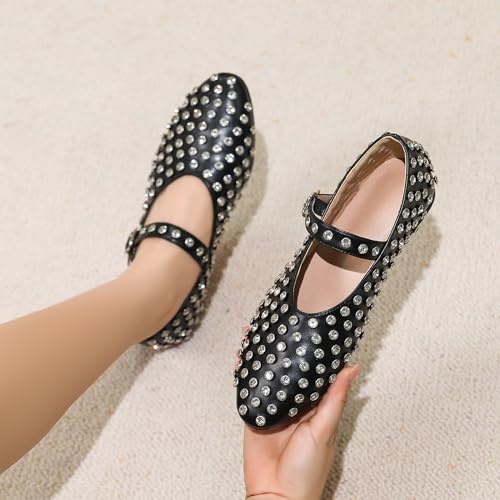 • 【EXQUISITE RHINESTONE DESIGN】:The distinguishing feature of the Mary Jane ballet flats is its rhinestone design, which adds a unique and stylish touch to the flats shoes.
