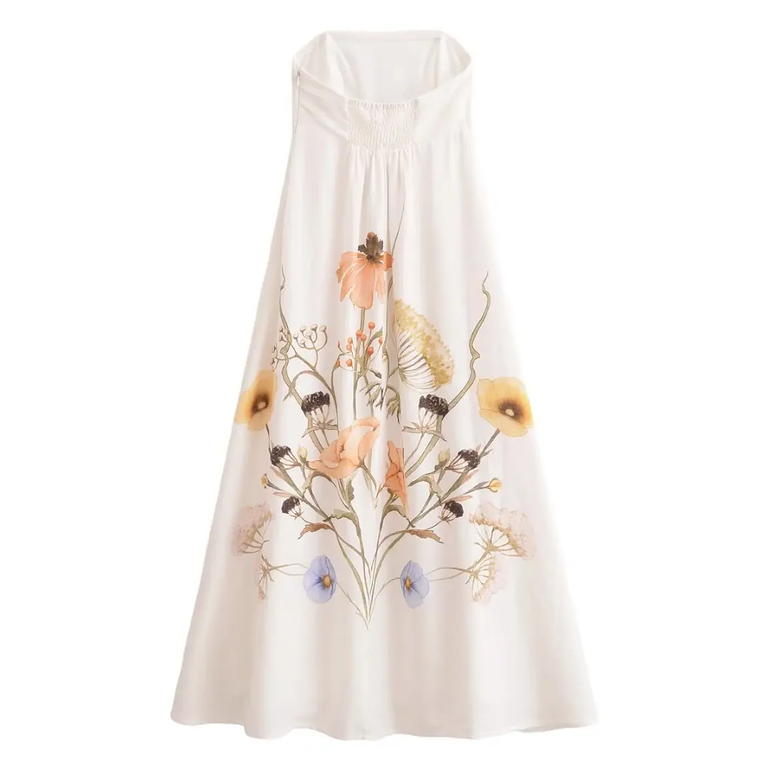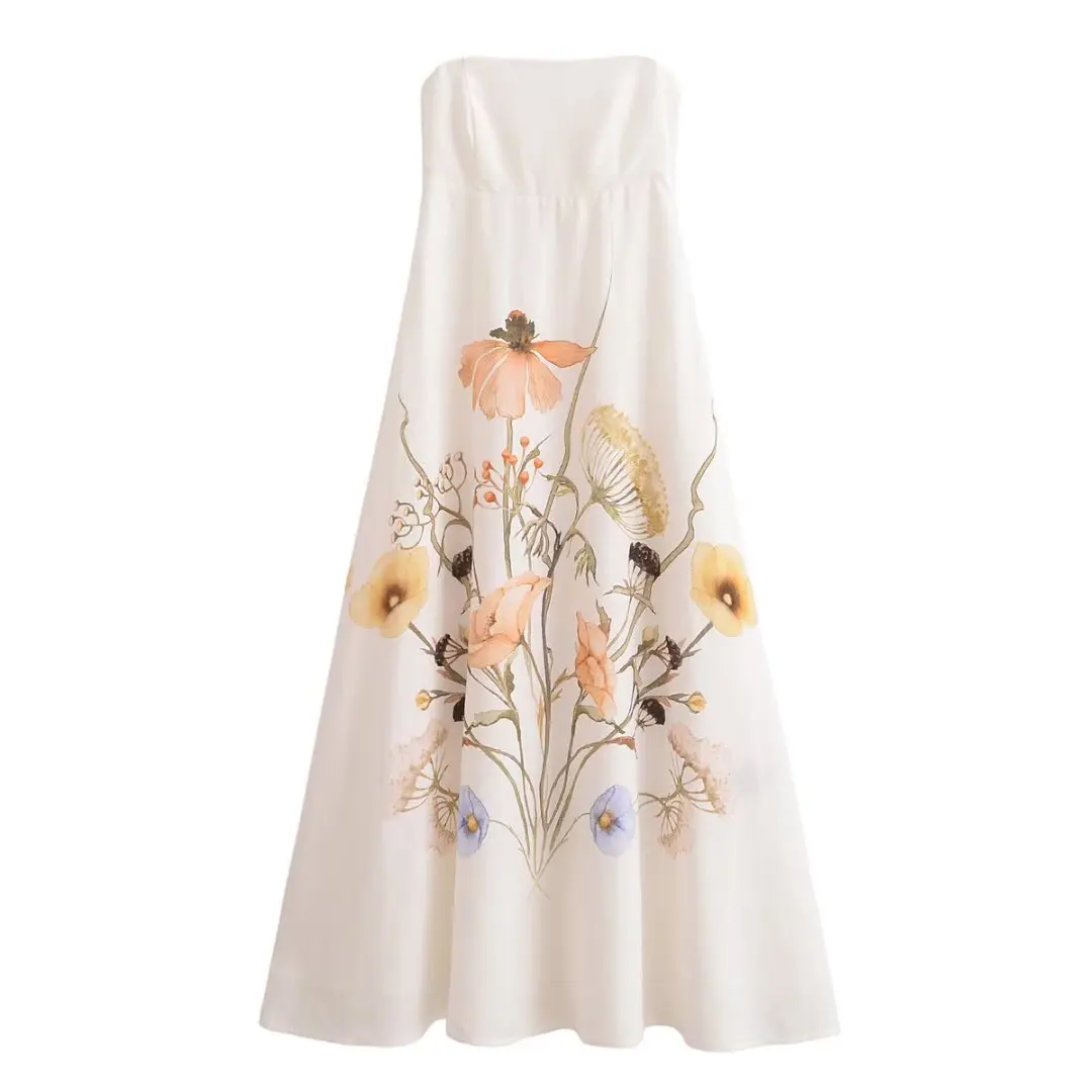 TRAFZA-Women Elegant Strapless Dress Casual Floral Tube Top Dress New 2025 Spring/Summer Glamorous Garden Parties Dinner Dress