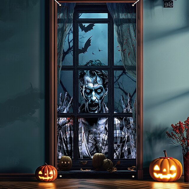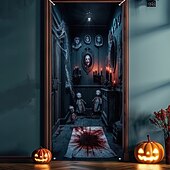 More information about Halloween Door Cover Outdoor Banners Zombies 3D Psychedelic Dark Punk Gothic Style Party Outdoor Shooting Backgrounds Front Door Wall Porch Home Decor