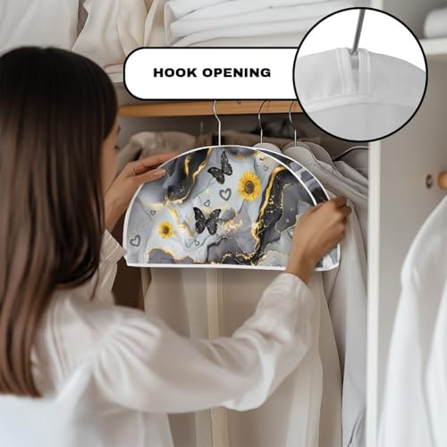 Babrukda Semicircle Clothes Dust Cover for Closet Black Marble Butterfly Garment Rack Cover 12.48 x 24.61 Inch Wardrobe Clothes Protector for Dress, Suit, Coat, Shirts, Hanger Not Included 4