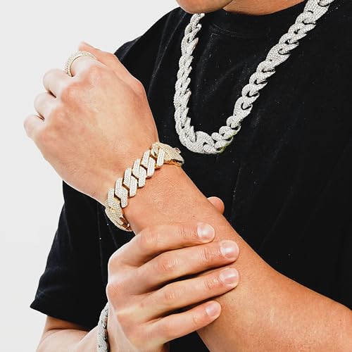 TOPGRILLZ Pulseras Para Hombres Gold Bracelet for Men Diamond Cuban Link Bracelet for Women 3 Row 20mm Miami 14K Gold Plated Iced out Straight Edge Rapper Costume 2