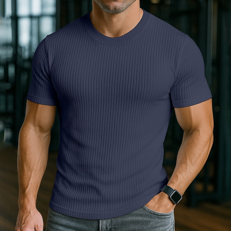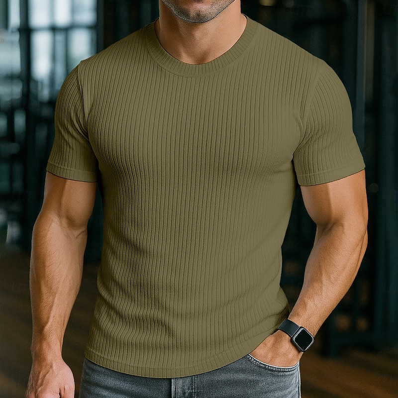 More information about Men's T Shirt Muscle Shirt Ribbed Knit tee Tee Top Short Sleeves Crew Neck Summer All Seasons Plain Pit Strip Fashion Designer Basic Plain Vacation Street Casual White Black Gray Top Tee for Men