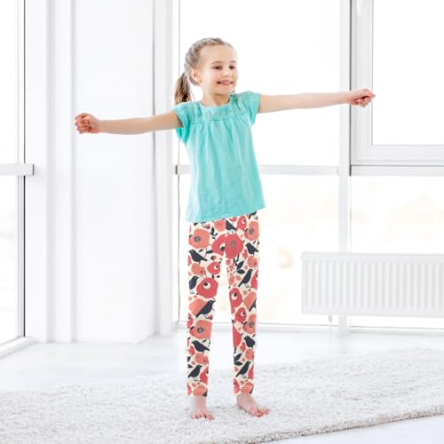 KLL Red Roses with Eyeballs and Black Crows Little Girls Athletic Leggings Stretch High Waisted Athleisure Pants Gym 6