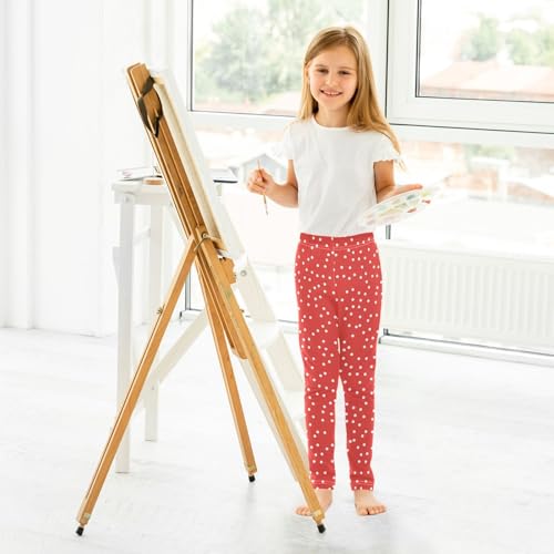 KLL Polka White Dots on Red Background Toddler Girl Active Leggings Soft High Waisted Sweatpants Running 6