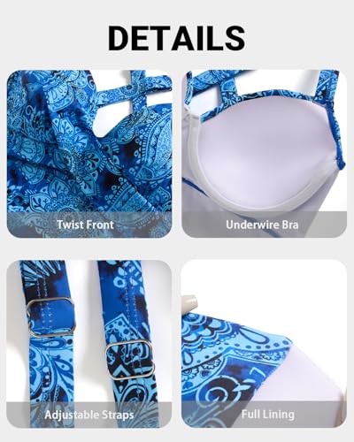 • Tankini Top for Women: This stylish swim top features a sweetheart neckline and twist-front design to accentuate your figure, while the crisscross back adds a charming touch.