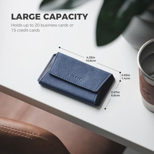 HOT ! VULKIT Leather Business Card Holder Case for Men Slim Pocket Business Card Wallet Name Card Case Holder, Holds 20 Business Cards Navy