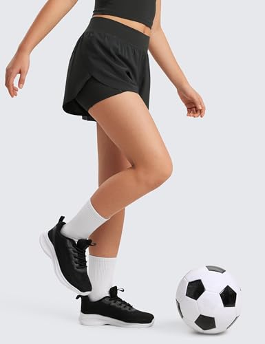 CRZ YOGA Girls 2 in 1 Dolphin Athletic Running Shorts with Pockets High Waist Teen Kid Workout Casual Tennis Soccer Split 3