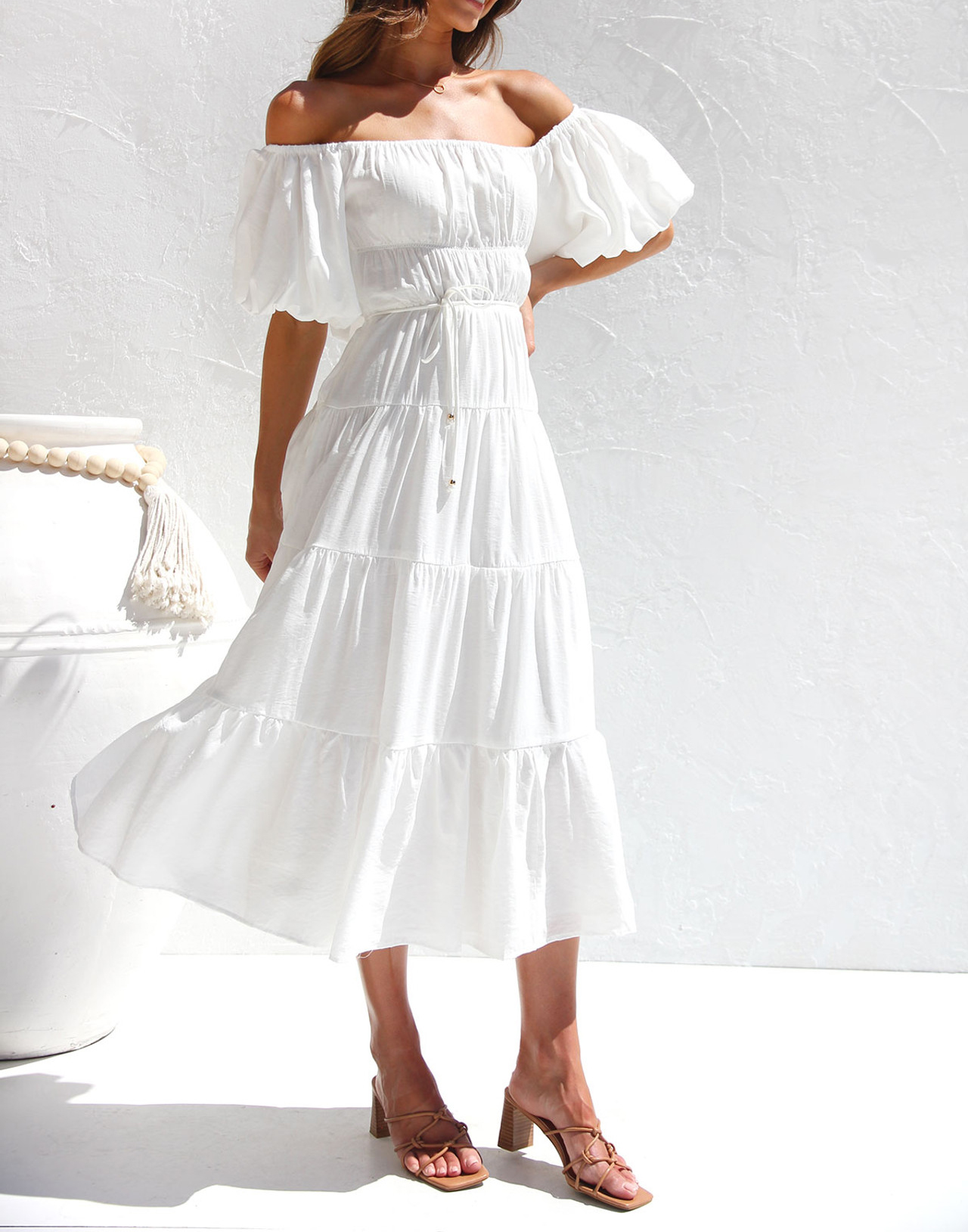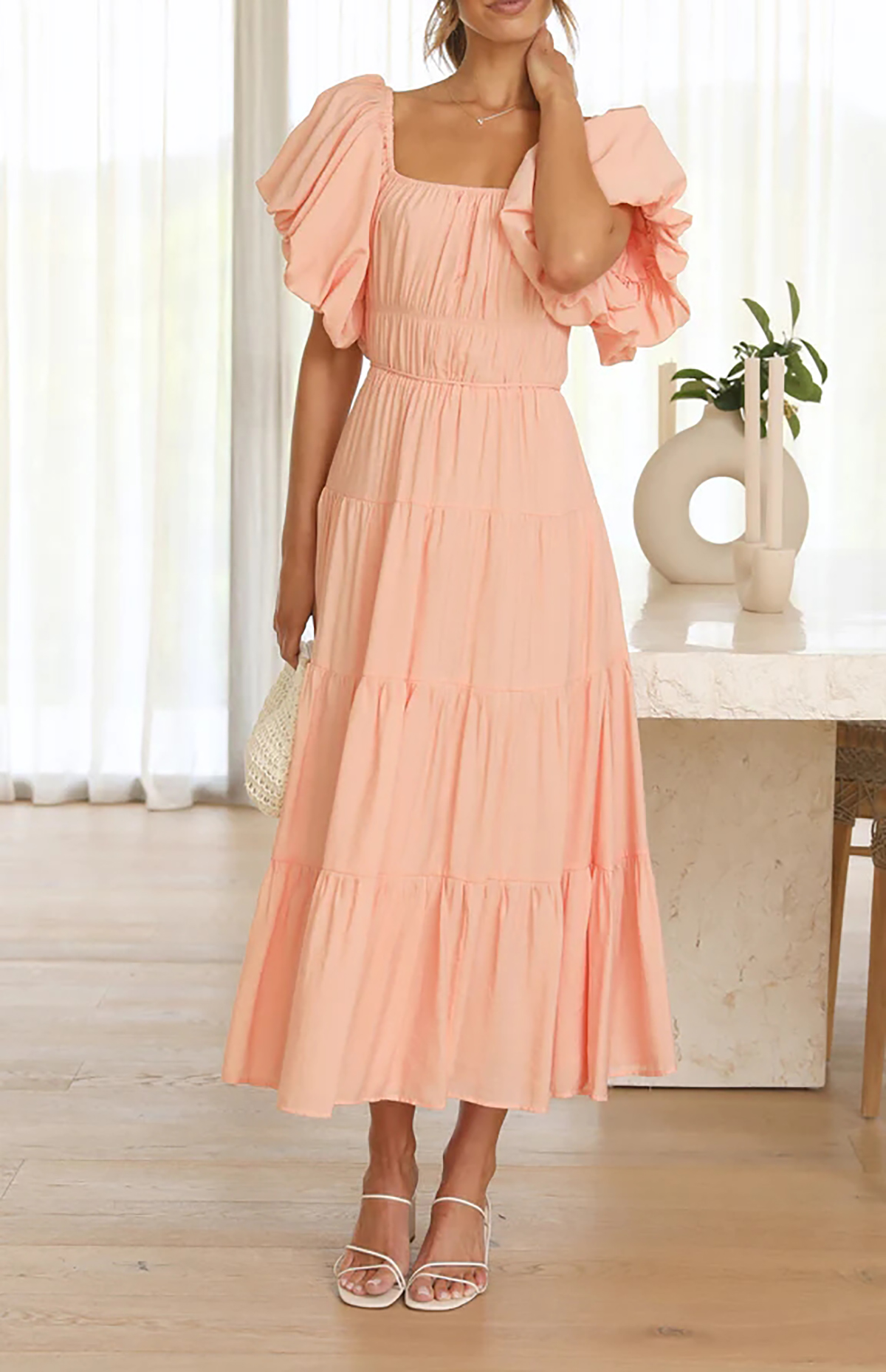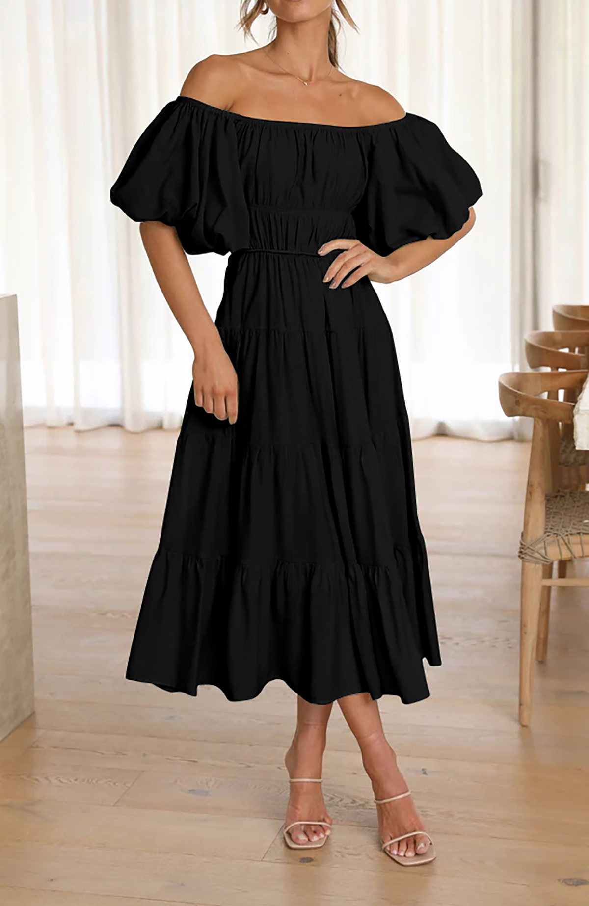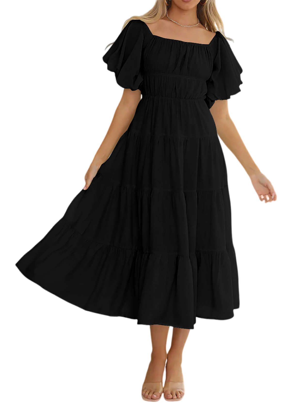 This beach dress has empire waist and midi length, making you more slender and feminine! The puff sleeve adds a cute vibe while the tiered ruffle is no only stylish but also flattering, giving the dress a casual and Bohemian flair that is perfect for relaxed summer vibe.
