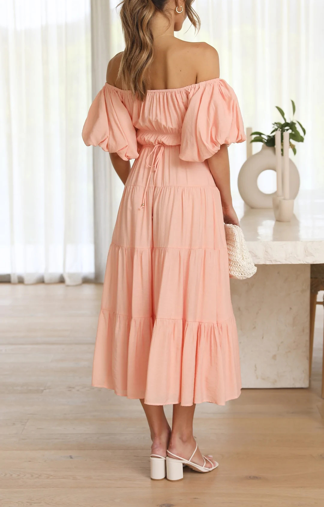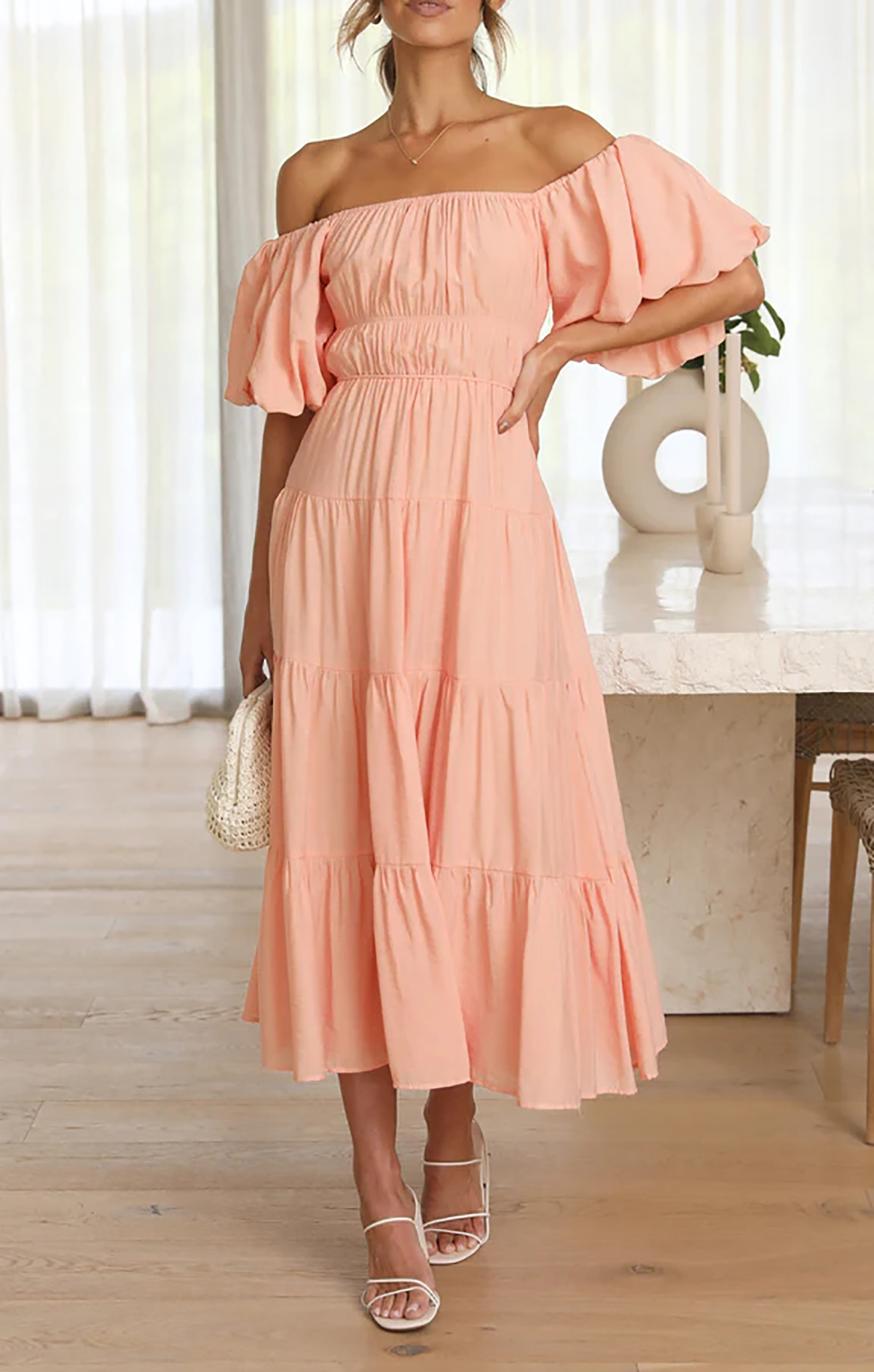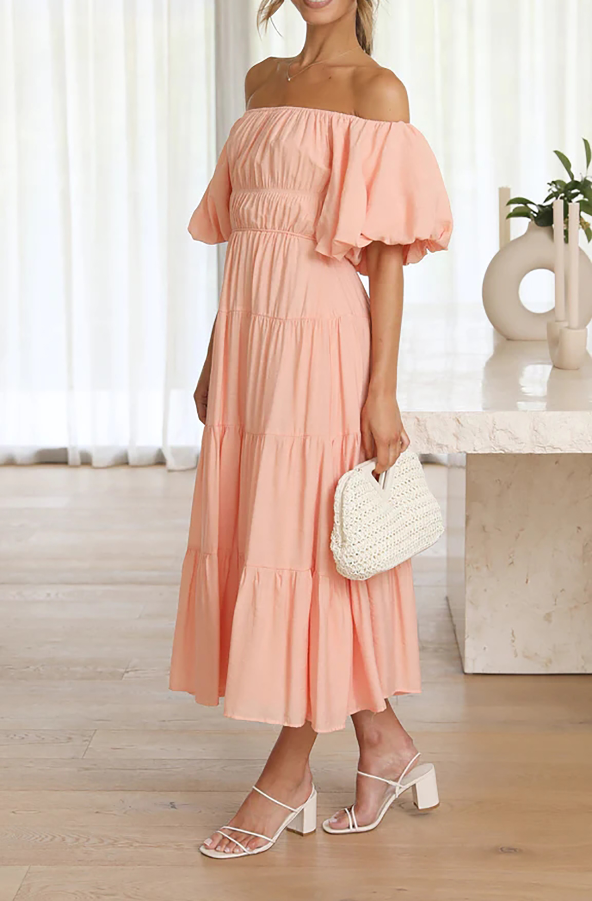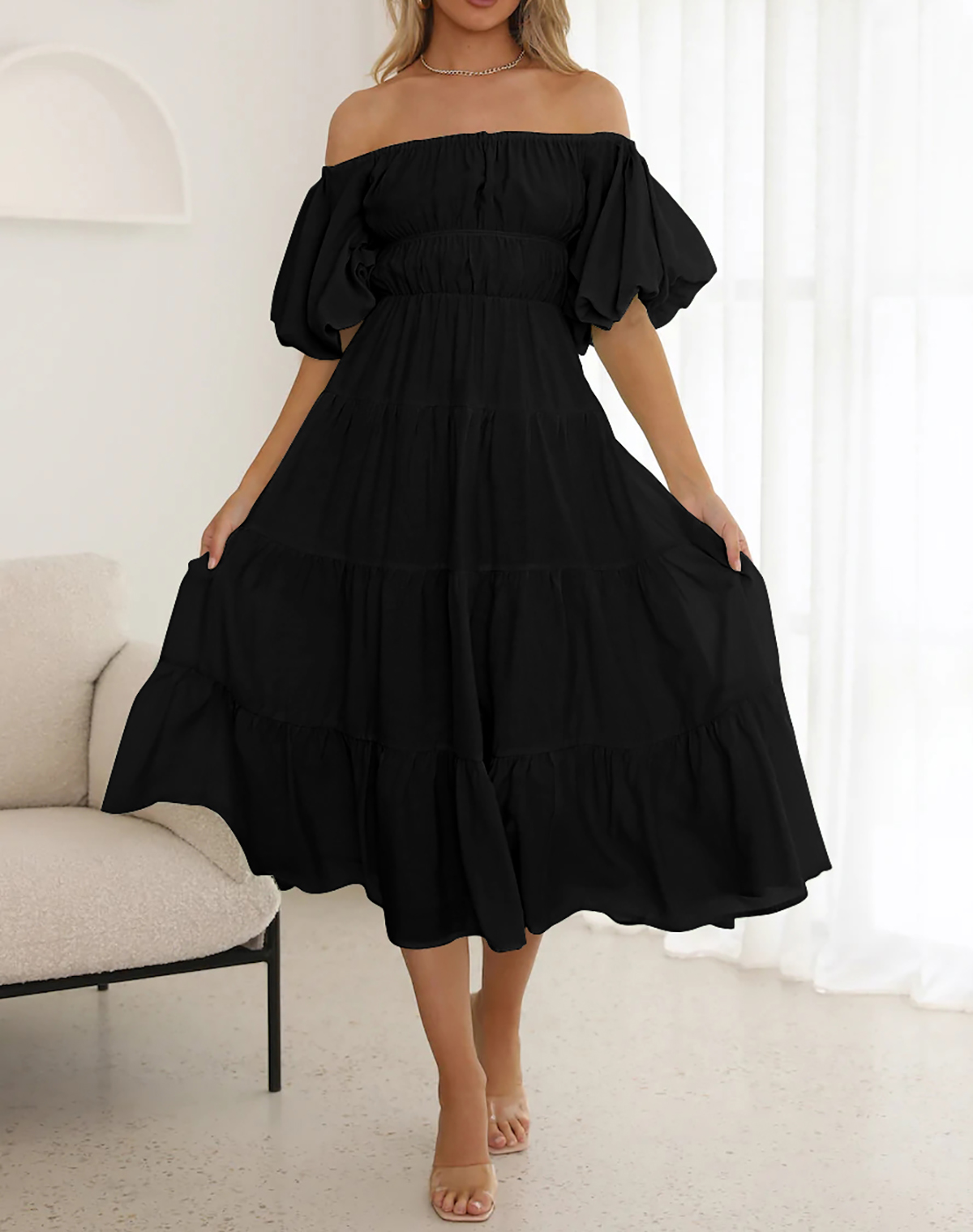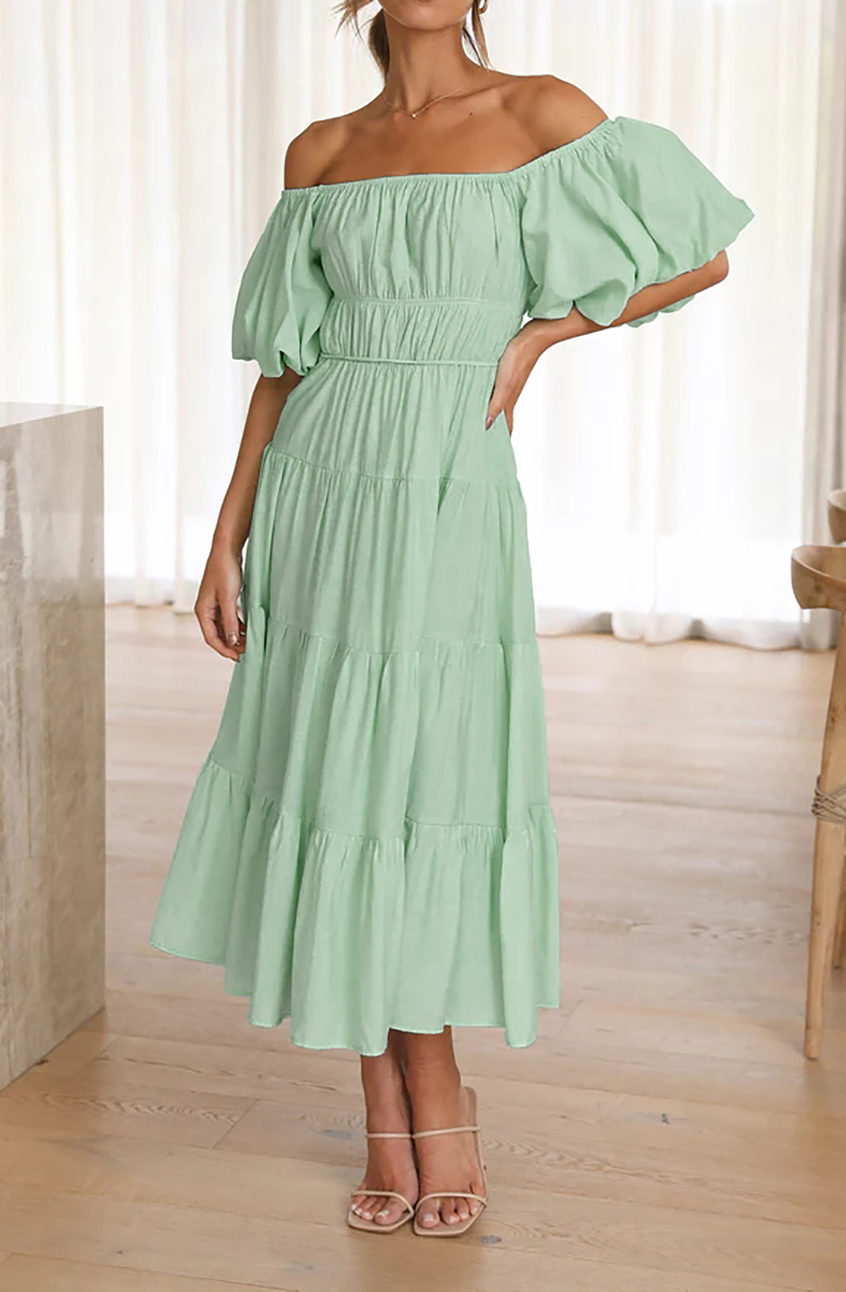 This beach dress has empire waist and midi length, making you more slender and feminine! The puff sleeve adds a cute vibe while the tiered ruffle is no only stylish but also flattering, giving the dress a casual and Bohemian flair that is perfect for relaxed summer vibe.