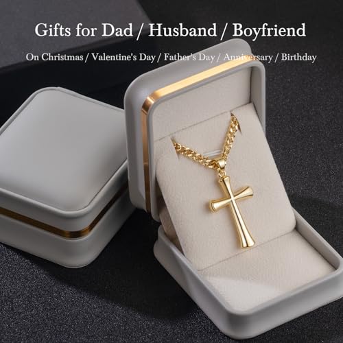 • [IDEAL PRESENT FOR MEN] This gold cross necklace makes an excellent present for male friends. The gold cross pendant highlights both personality and style, and the 14k gold plated cross chain for men serve as a symbol of friendship and refined taste