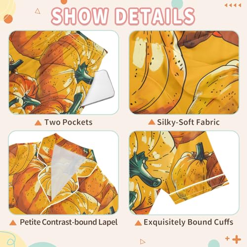 Satin Pajama Sets Short Sleeve Pumpkin Pattern Print in Orange Button Down Silky Nightwear 2 Piece PJS 5-14Y 1