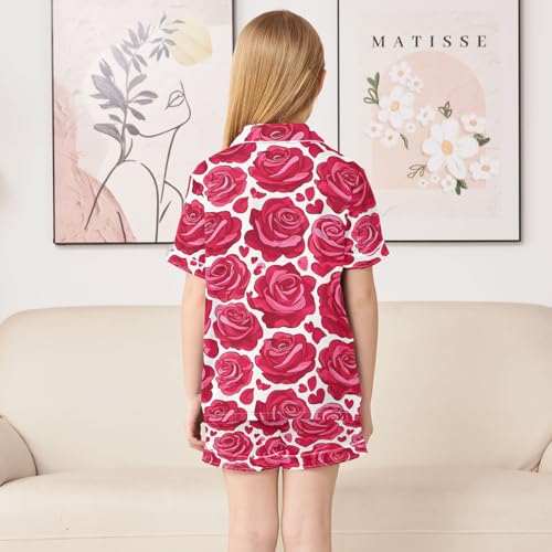 Romantic Rose Love Heart Pajamas Set Summer Button Down Sleepwear Pjs Sets Comfy Loungewear 4