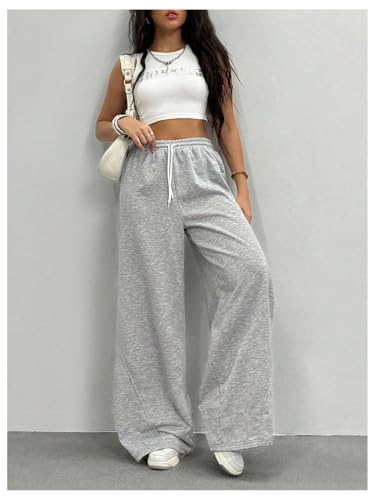 • Features: Wide leg sweatpants for teen girls, elastic waist with adjustable drawstring, loose fit, solid color, open bottom, baggy sweat pants