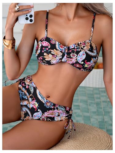 HOT ! MakeMeChic Women's Floral Bikini Sets Spaghetti Strap Ruched Drawstring Beachwear Bathing Suit