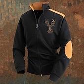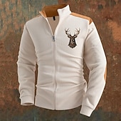 More information about Men's Lightweight Jacket Transition Jacket Casual Jacket Vacation Daily Breathable Pocket Jacquard Fall & Winter Color Block Deer Fashion Classic Stand Collar Regular Black White Blue Khaki Gray