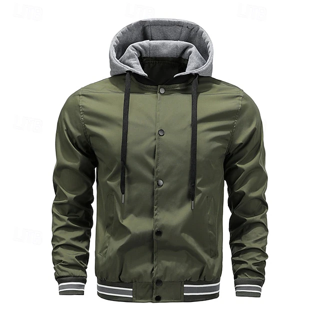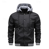 More information about Men's Lightweight Jacket Casual Jacket Hoodie Jacket Vacation Daily Breathable Pocket Spring Fall Stripe Fashion Classic Hooded Regular Black Army Green Jacket