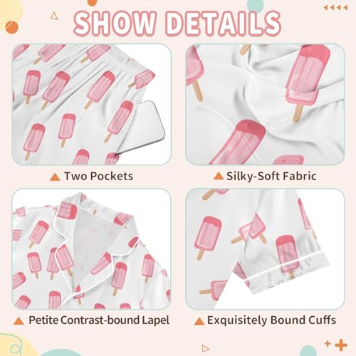 Pink Ice Cream Pajamas Sets Short Sleeve Button Down Sleepwear Silk Stain Pjs for 5-14Y 4
