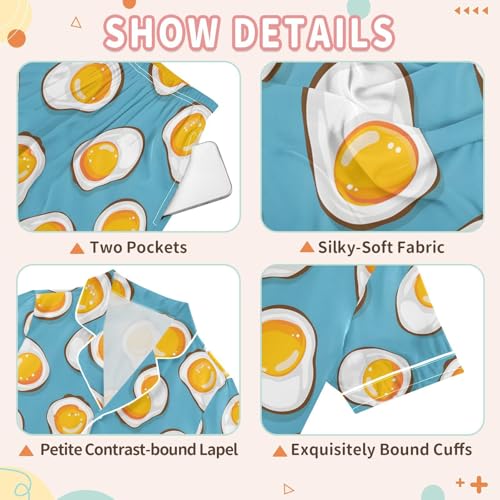 ALAZA Yellow Egg Blue Pajamas Satin Pajama Set Short Sleeve Button Down Sleepwear 3