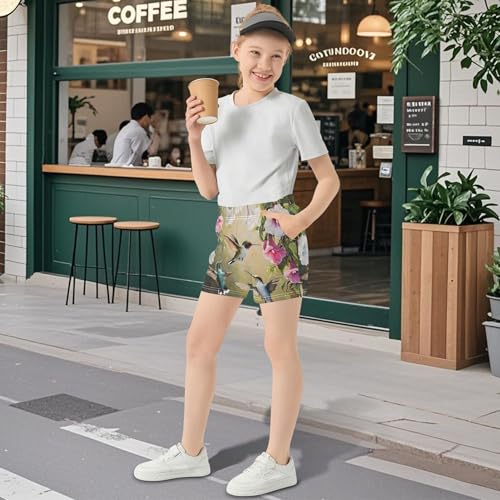Girls Lounge Shorts Floral Hummingbird Print Soft Summer Athletic Pajama Shorts Kids Teens Lounge Activewear, X-Small 5