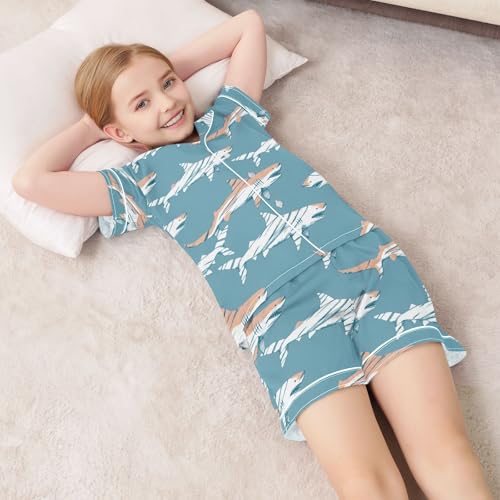ALAZA Striped Shark Pajamas Satin Pajama Set Short Sleeve Button Down Sleepwear 3