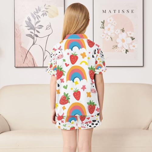 senya Strawberry Rainbow Cow A Satin Summer Pajama Sets Silk Short Sleeve Button Down Sleepwear 1