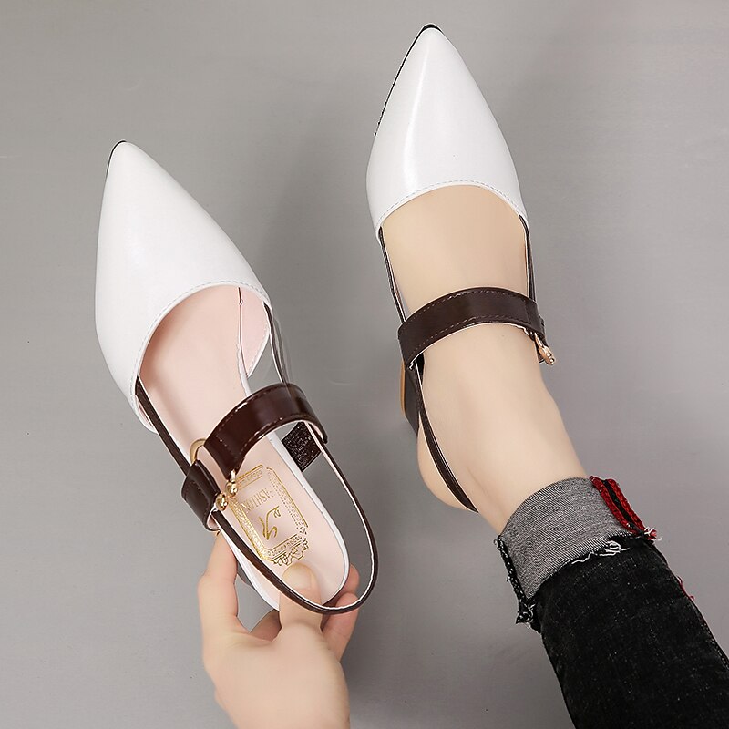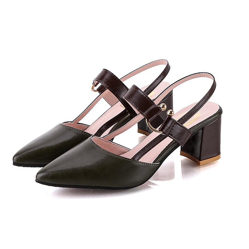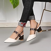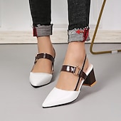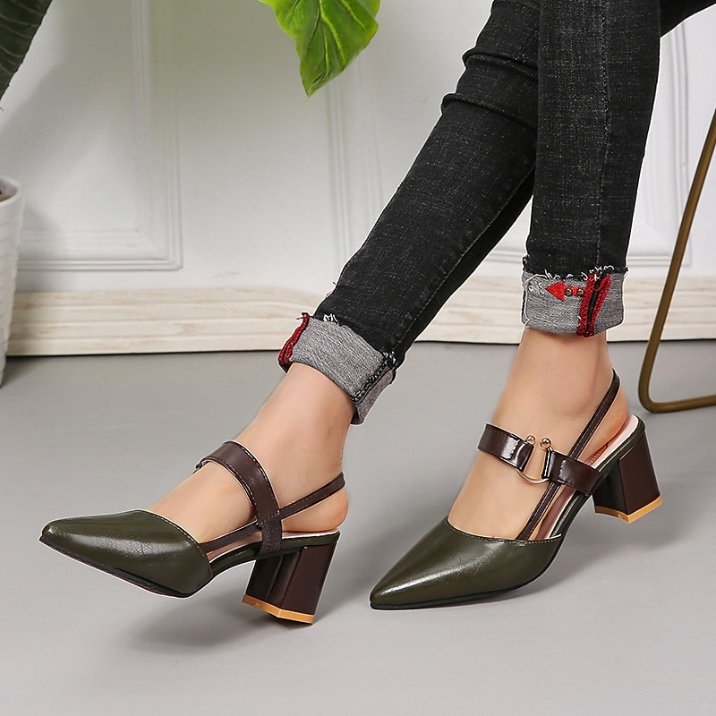 Highlights [Fabric] : Crafted from high-quality faux leather, these women's sandals offer a sophisticated blend of style and durability. The PU upper ensures they are suitable for both casual and formal occasions, providing a comfortable and stylish fit. [Silhouette] : The shoes feature a chic pointed toe and a classic block heel design, giving an elegant silhouette that elongates the legs. The approximately 5 cm low heel height ensures stability and comfort, making them perfect for all-day wear. [Design Highlights] : These sandals boast a modern color block pattern in contrasting shades, adding a touch of sophistication to your outfit. The slingback style features an adjustable ankle strap for a secure and customized fit, while the rubber outsole provides traction and durability. [Occasions] : Ideal for spring and summer, these versatile sandals are perfect for parties, daily outings, and various occasions. Whether dressing up for an event or enjoying a casual day out, these shoes offer versatility and style that complement a wide range of outfits. [Size Range] : Available in sizes 36 to 42, ensuring a suitable fit for a broad range of foot sizes. Please refer to the provided size chart to find your perfect fit.