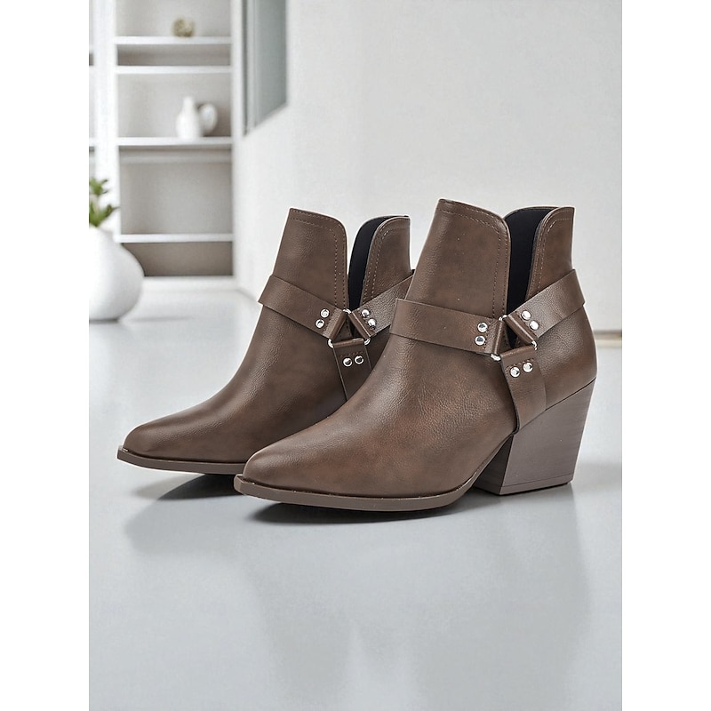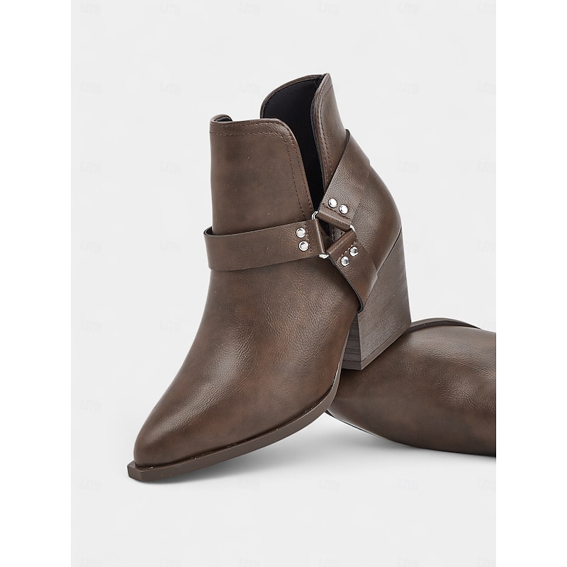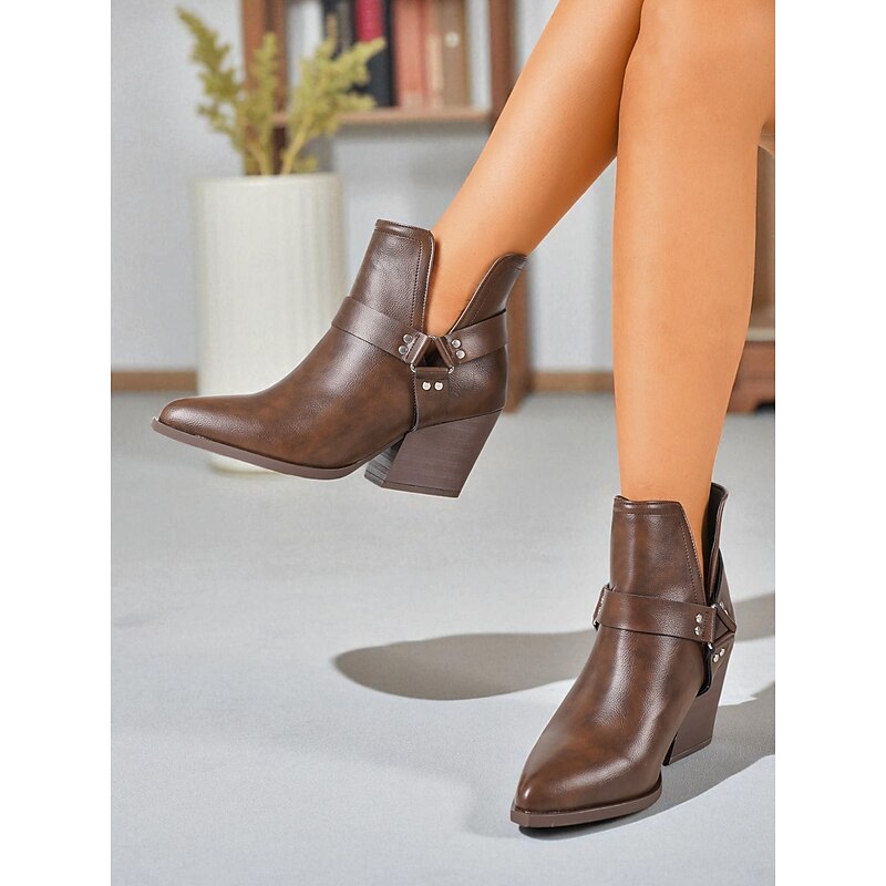 HOT ! Women's Pointed Toe Ankle Boots – Faux Leather Mid-Heel Western Booties for Office Outfits, Urban Street Style and Daily Workwear