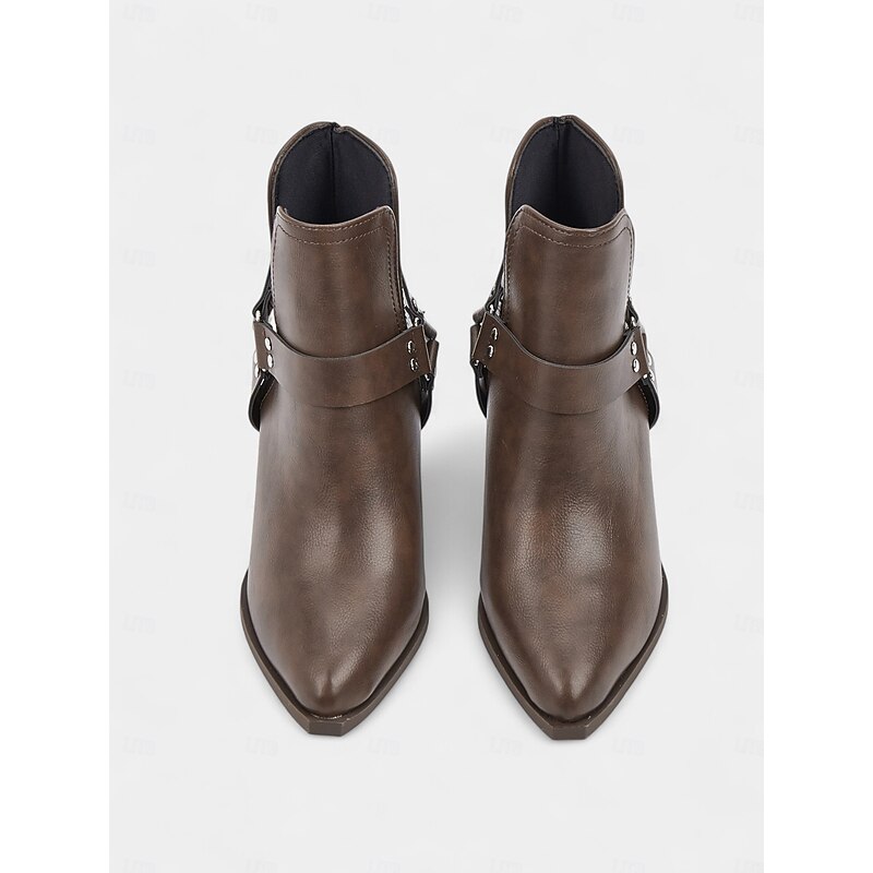 Women's Pointed Toe Ankle Boots – Faux Leather Mid-Heel Western Booties for Office Outfits, Urban Street Style and Daily Workwear 12
