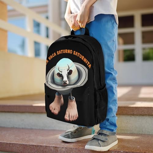 La Vaca Saturno-Saturnita Merch Backpack With Pocket Italian-Brainrot Meme Travel Backpack 42x30.5cm 6