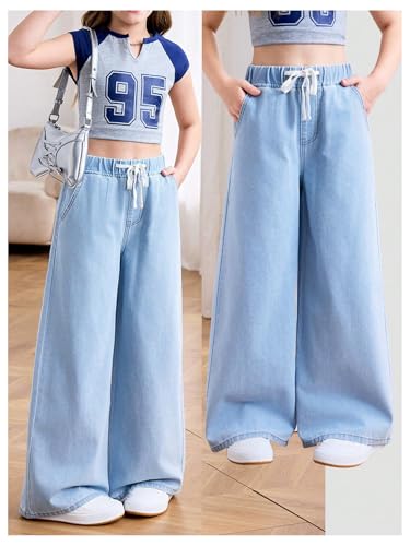More information about Girl's Wide Leg Jeans Drawstring Waist Baggy Denim Pants Casual Long Trousers with Pockets