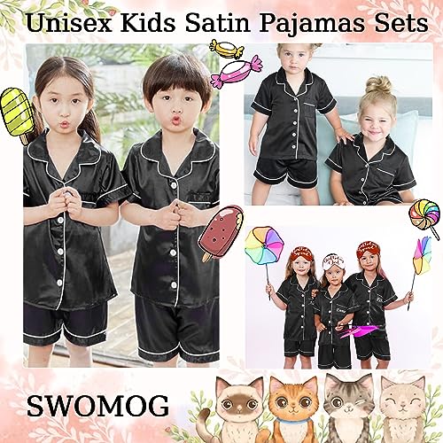SWOMOG Unisex Kids Silk Satin Pajamas Sets Girls Boys Pjs Set Button-Down Sleepwear Short Sleeve Nightwear 2 Piece 3