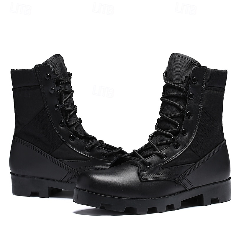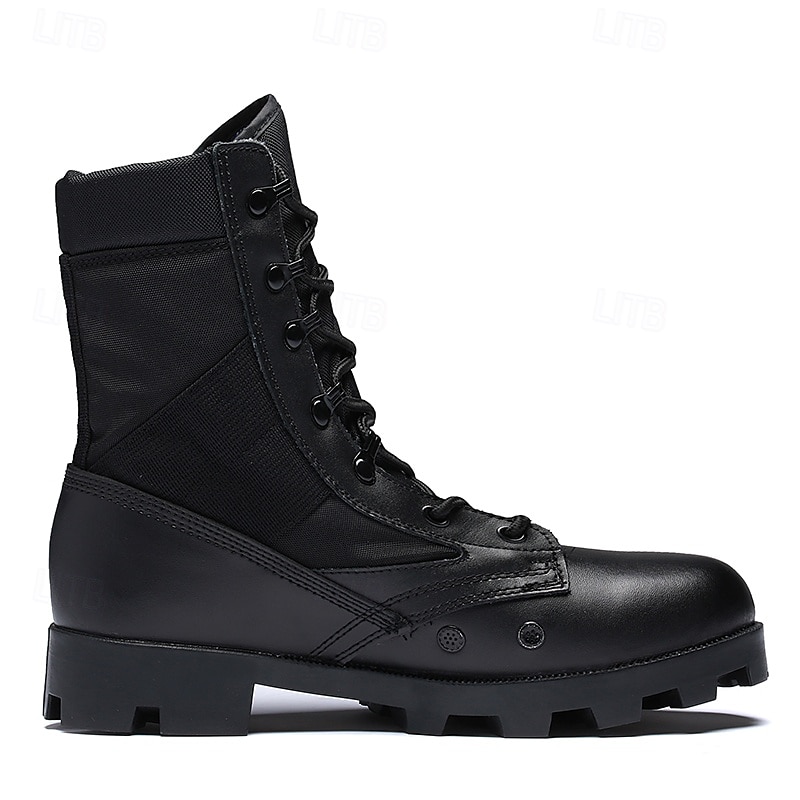 : Crafted from a blend of durable suede, nylon, and Italian full-grain cowhide, these men's tactical combat boots offer exceptional breathability and comfort. The mesh lining ensures superior airflow, keeping your feet cool even during intense activities.