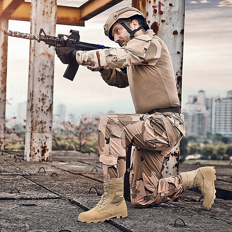 Men's Tactical Combat Boots – High-Top Military Desert Boots with Lace-Up Design for Outdoor Hiking & Work