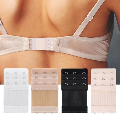 HOT ! 4 Pcs Women's Bra Extenders 3 Hooks 3 Rows, Elastic Bra Extenders, Soft Stretchy Back Bra Extension Strap, Adjustable Bra Extender (Black, White, Nude, Beige)