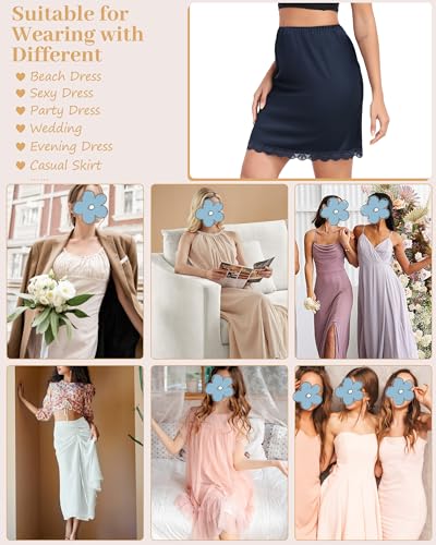 Vlazom Women's Satin Half Slip - High Waisted Silky Underskirt with Lace Trim,Anti-Static Slip Skirt for Dresses S-3XL 5