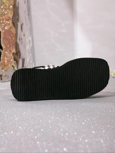 Women's Checkered Pattern Platform Heels Sandals Trendy Slip on Wedge Sandals Chic All-match Shoes for Daily Wear Casual Walking Slides No Slip Thick Sole with Arch Support Summer Party Vacation 6