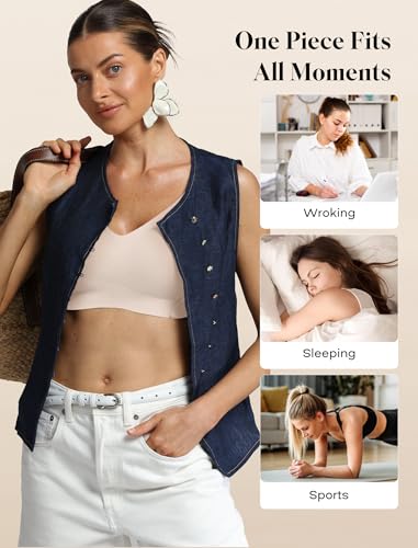 COMFELIE Seamless Wireless T-Shirt Bra, Women No Underwire Full Coverage V Neck Adjustable Straps Everyday Bra & Push Up 5