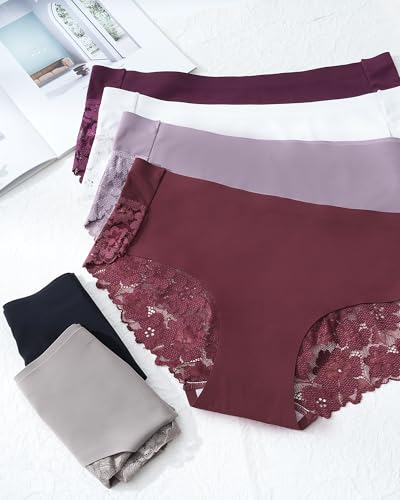 LEVAO Cheeky Underwear for Women Lace Seamless Bikini Panties Ladies Soft No Show Hipster 6 Pack S-XXL 5