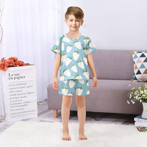 ALAZA White Strawberry Blue Pajamas Short Sleeve 2 Piece Sleepwear Top and Bottom Pajama Set Unisex 6