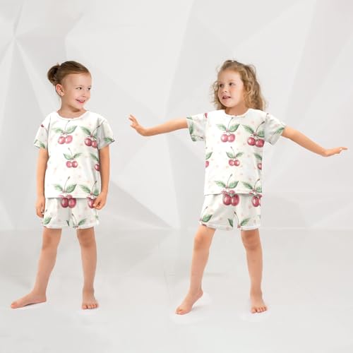 ALAZA Yellow Polka Dot Cherry Bow Pajamas Set Short Sleeve Cotton Sleepwear Summer Pjs 2 Piece 5-14Y 2