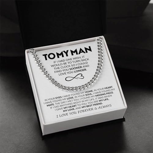 HOT ! To My Man Husband Boyfriend Cuban Link Chain Silver Stainless Steel Necklace for Birthday Anniversary Christmas Valentine's Day Gifts for Him, Gifts for Men