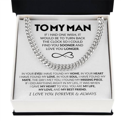 More information about To My Man Husband Boyfriend Cuban Link Chain Silver Stainless Steel Necklace for Birthday Anniversary Christmas Valentine's Day Gifts for Him, Gifts for Men