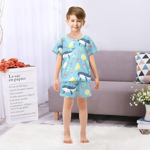 ALAZA Cartoon Whale Lemon Pajamas Short Sleeve 2 Piece Sleepwear Top and Bottom Pajama Set Unisex 6